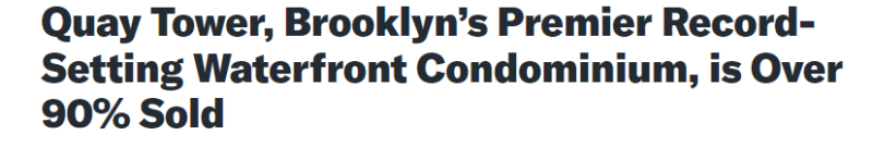 Quay Tower, Brooklyn’s Premier Record-Setting Waterfront Condominium, is Over 90% Sold